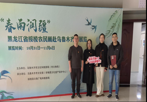 而后,此次参与活动的党员一同参观了“春雨润疆”黑龙江省绥棱农民画展,通过欣赏色彩明快、设色大胆的绥棱农民画感受其特有的原生态的民俗乡土气息和其独有的艺术魅力,走进非遗文化,做非遗的传承者。