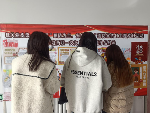 在活动开展前夕,机关党委第一党支部全体党员与三二一结对交友学生积极制作手抄报、板报,共收到17份消防安全主题作品。在“消防宣传日”支部党员教师与传媒学院结对学生共同设计作品展示栏,通过沉浸式活动让师生切实认识火灾的危害,学习应对突发情况的正确处理措施,进一步增强消防安全意识和面对火灾的应急处理能力。